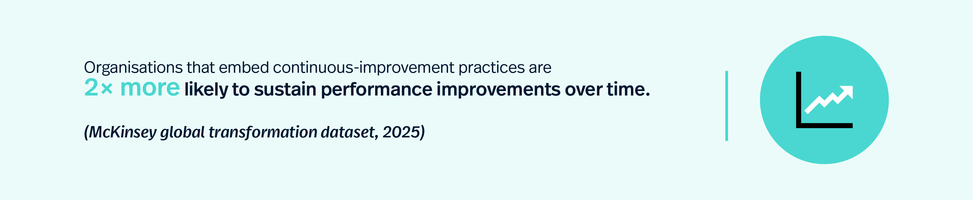 They are shifting to an operating model built for continuous improvement: one that can absorb frequent change, support rapid learning cycles, and consistently translate strategy into clear, executable actions for teams.