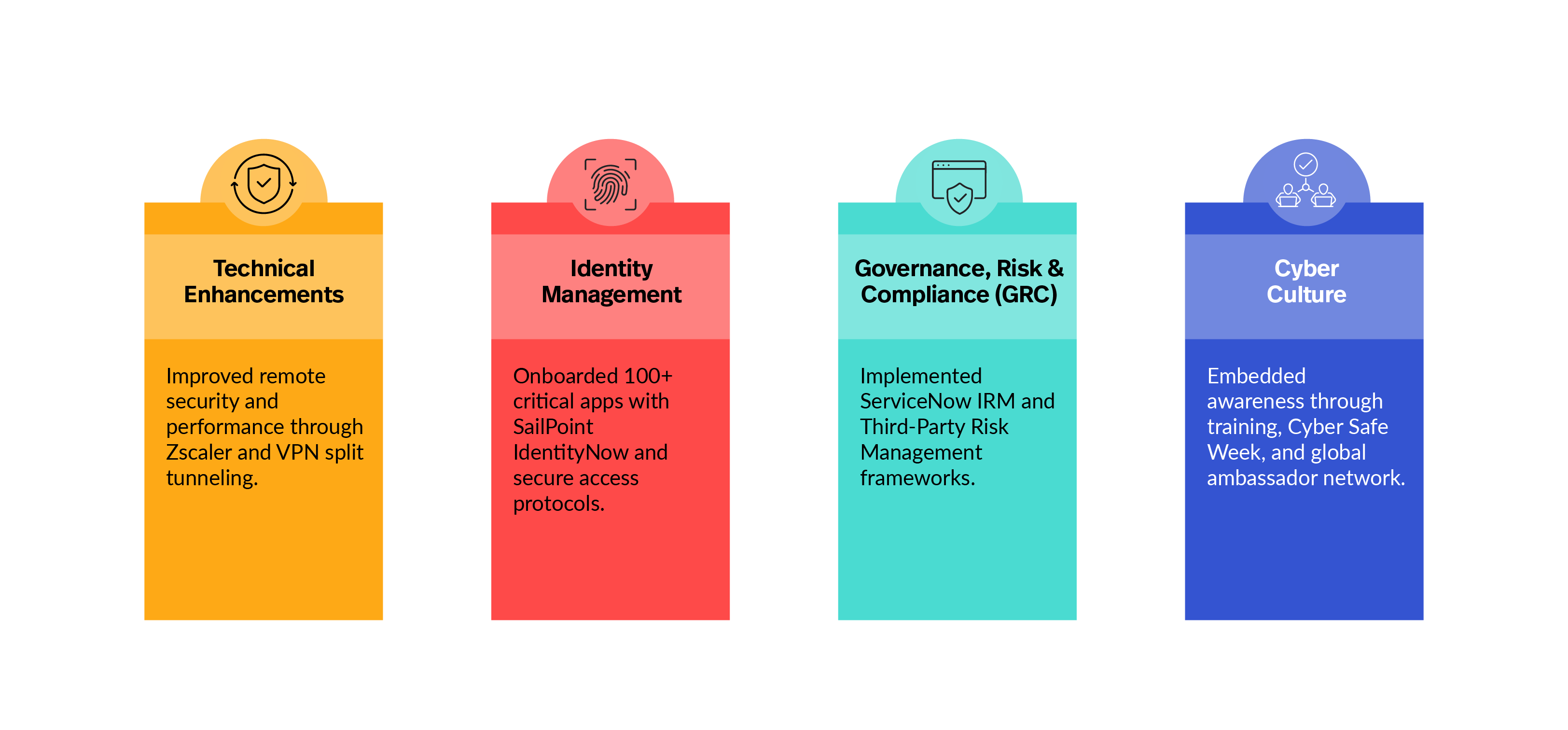 The organisation was undergoing a significant transformation in its digital security posture, driven by the need to unify multiple cybersecurity initiatives under a cohesive strategy while maintaining business continuity and user engagement. Key challenges included: - Strengthening cybersecurity across technical, governance, and cultural dimensions.A critical challenge was ensuring that employees and third parties understood their role in maintaining cybersecurity—even when it wasn’t part of their core responsibilities.