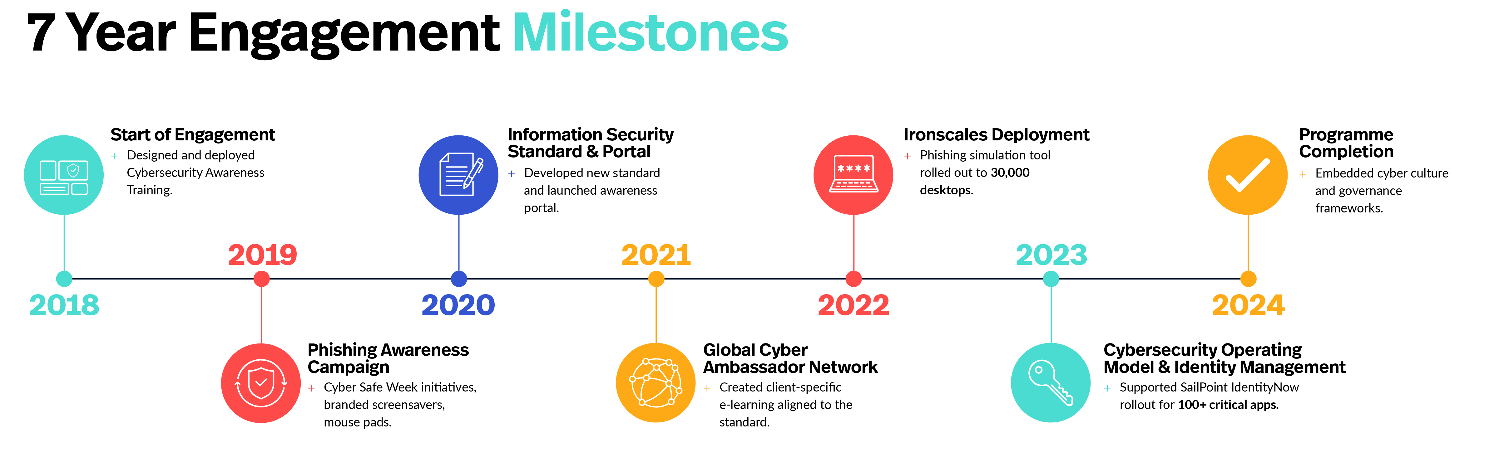 The Cybersecurity Programme significantly enhanced a large, complex global organisation operating across multiple regions with a diverse workforce and high-stakes digital infrastructure’s cyber resilience, with people at the heart of its defence strategy.